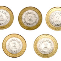 ARGENTINA 5 PESOS 2010 – 2016 SET 5 MONEDAS BIMETALICA 200th ANIVERSARIO DE LA REVOLUCION 1810 KM# 165 Argentina 2010 – 2016 UNC ARGENTINA 2 PESOS 2010 2011 2014 2015 2016 FULL SET 5 MONEDAS BIMETALLIC 1810 Revolution, 200th Anniversary 7.20 g., Bi-Metallic Copper-Nickel center in Aluminum-Bronze ring, 24.5 mm. Weight: 7,2 gr Diametro: 24,5…