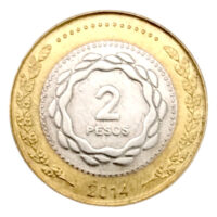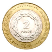 7.20 g., Bi-Metallic Copper-Nickel center in Aluminum-Bronze ring, 24.5 mm. Argentina 2016 UNC