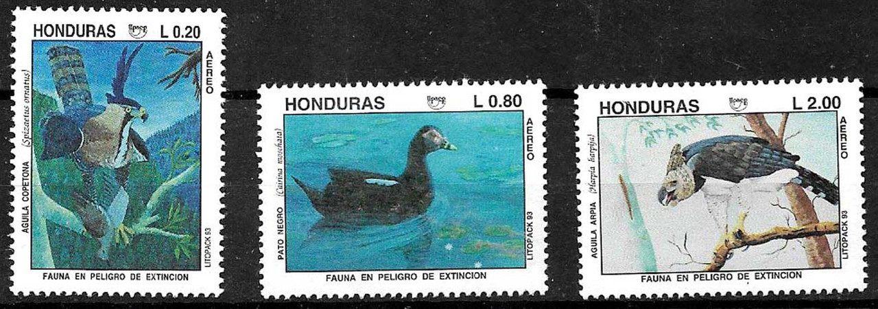 #6619 HONDURAS 1993 UPAEP AMERICA FAUNA PAJAROS YV AE 837-9 MNH