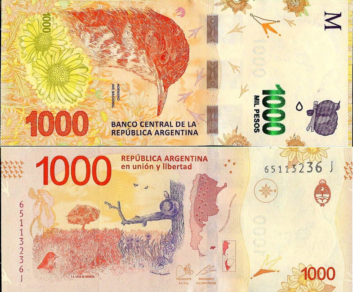 ARGENTINA 1000 PESOS «HORNERO» UNC YEAR 2017