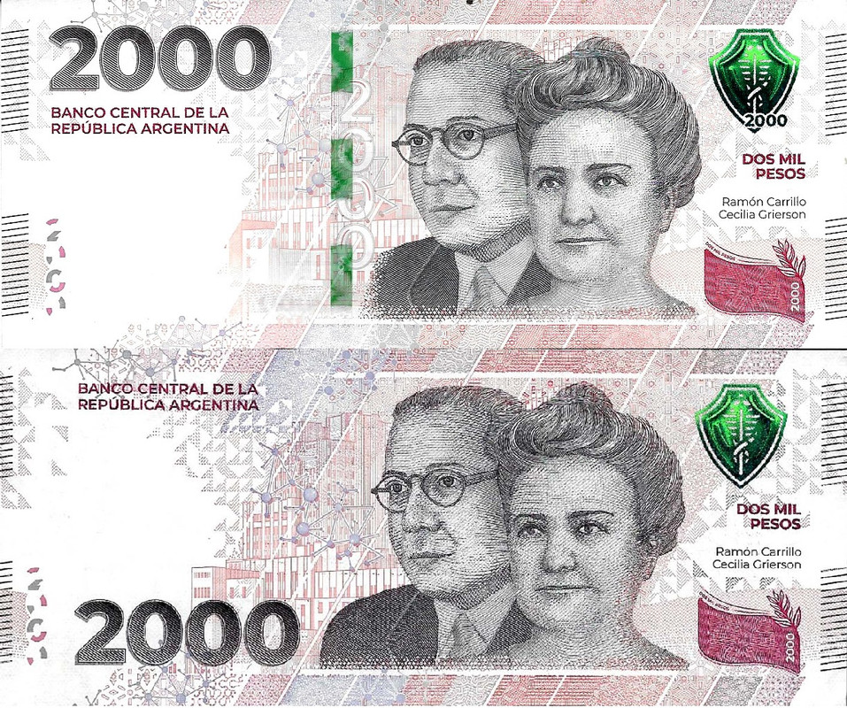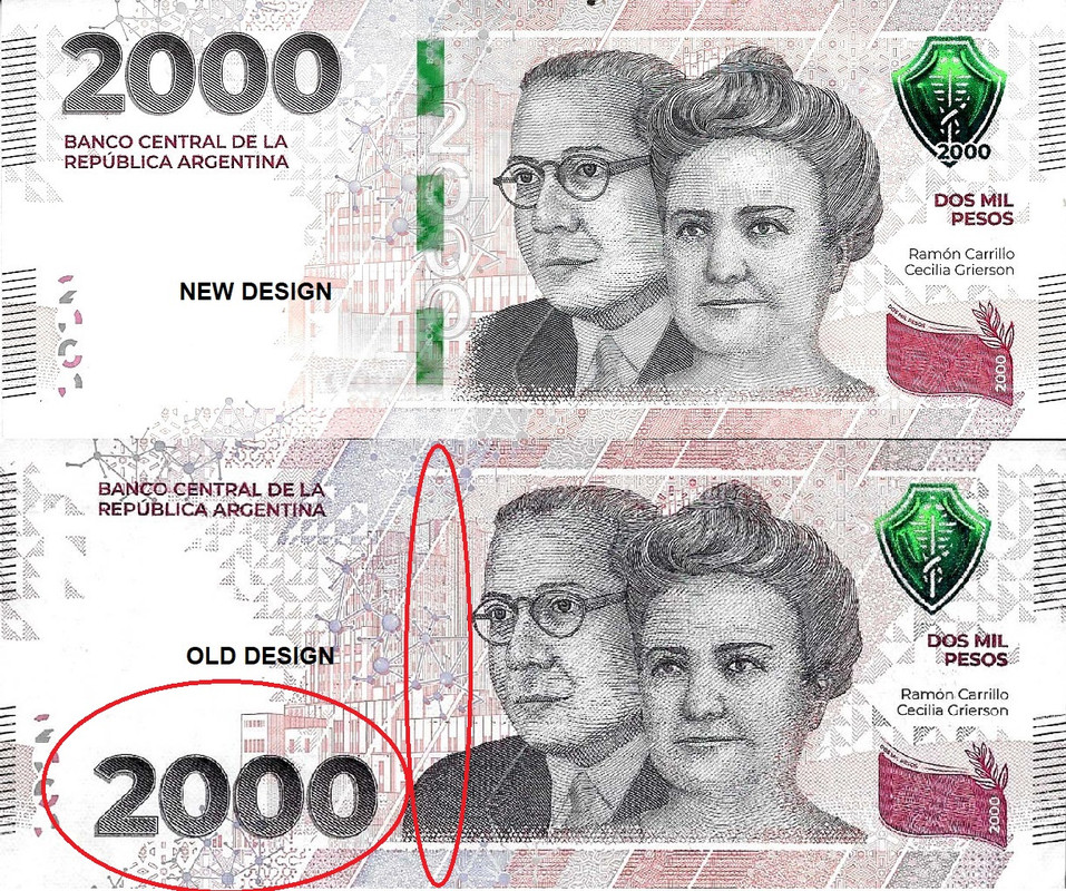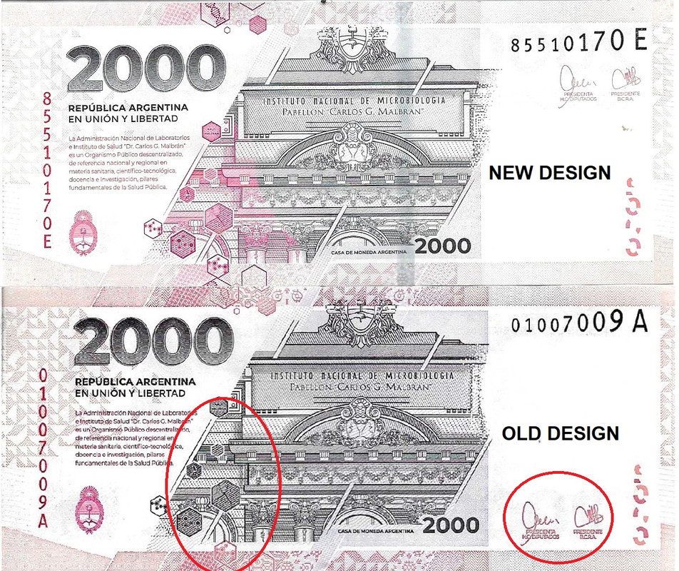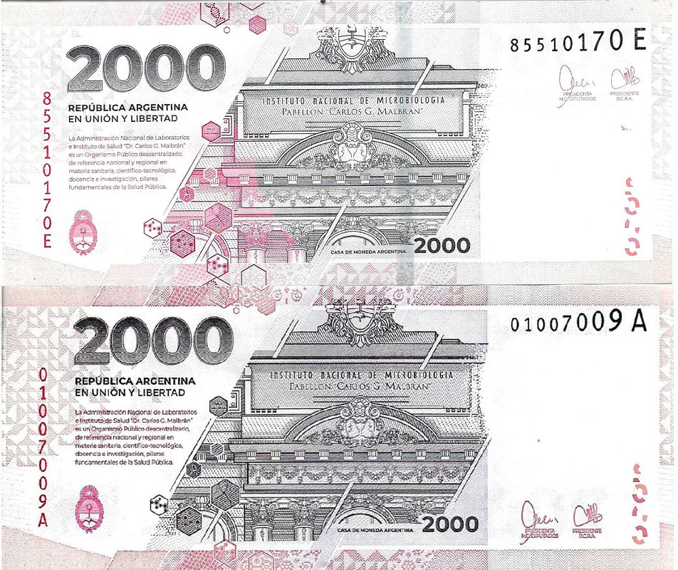 ARGENTINA 2000 PESOS 2023 OLD AND NEW DESIGN SECURITY BAND UNC COMBO cantidad