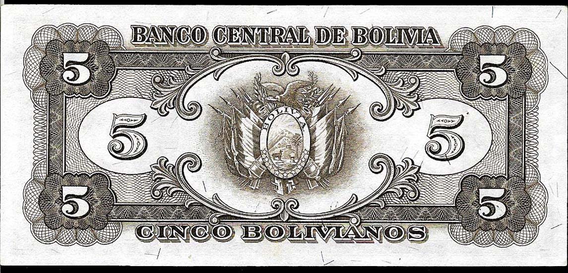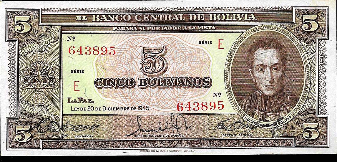 #B34 BOLIVIA 5 BOLIVIANOS AÑO 1945 UNC cantidad