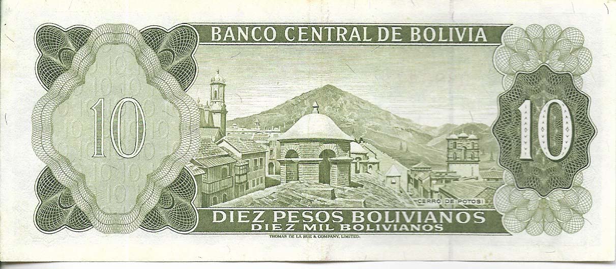 #B49 BOLIVIA 10 PESOS BOLIVIANOS AÑO 1982 VF cantidad