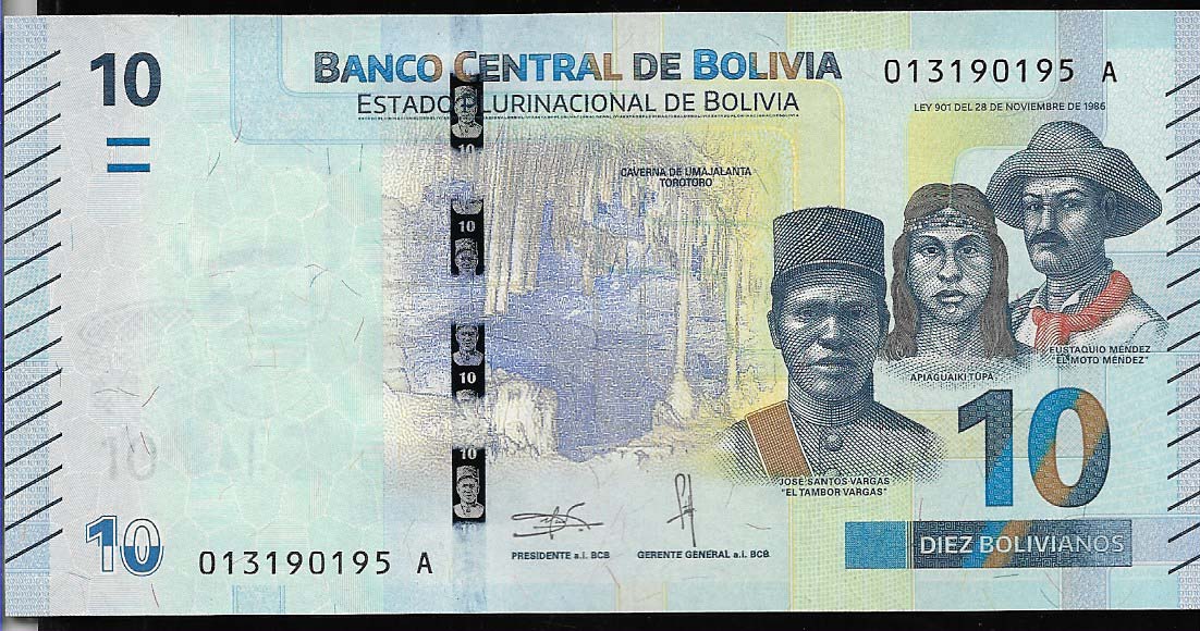 #B53 BOLIVIA 10 BOLIVIANOS AÑO 2019 UNC cantidad